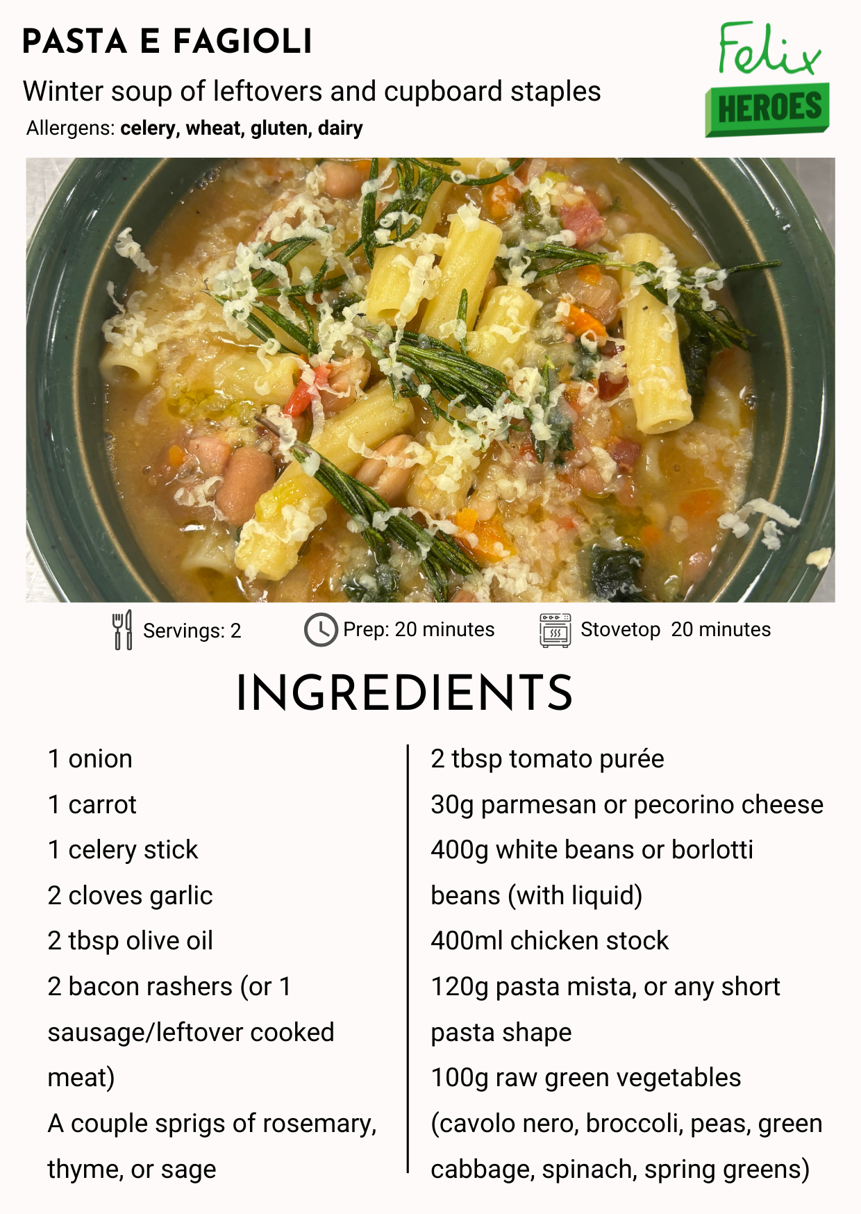 Everyone usually has some dried pasta, a tin of beans, miscellaneous leftover meat and vegetables, and a stock cube lying around between Christmas and New Year – and I wanted to share this recipe guide in the hope that it helps you spend more time with the people who matter this holiday season.