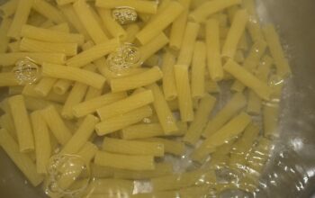 Toss in the green vegetables and let them cook while you prepare the pasta.