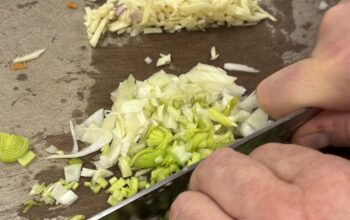 Finely chop the onion, carrot, celery, and garlic.