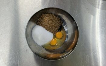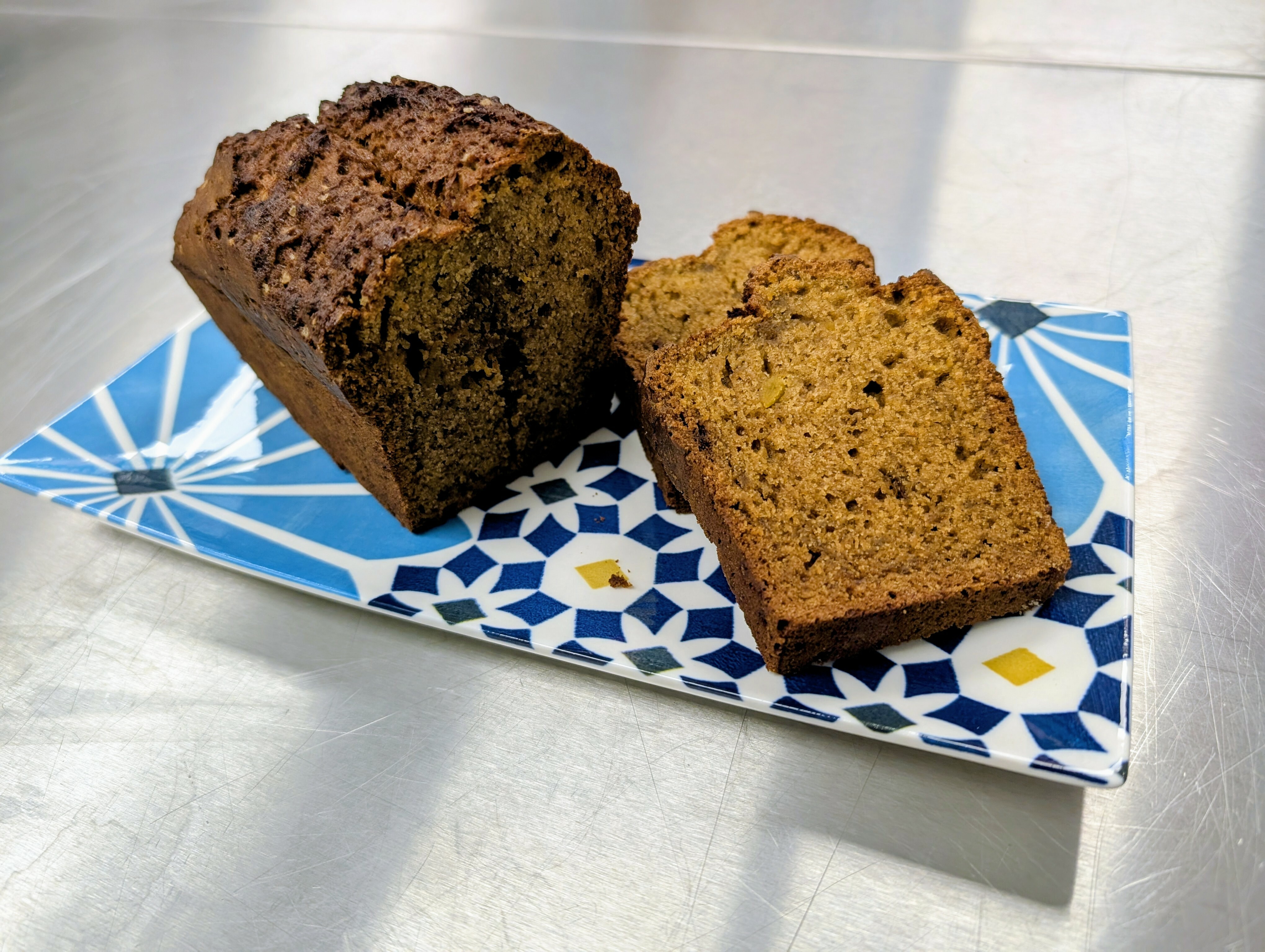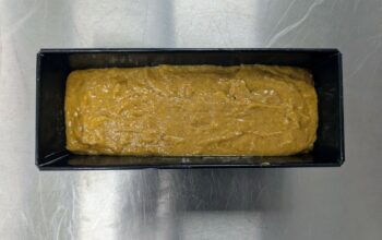 Pour the batter into a buttered loaf pan, leaving about 2.5cm from the top as the loaf will rise. Bake for 60–65 minutes, making sure to loosely cover the bread with aluminium foil halfway through to prevent the top from getting too brown. The bread is done when a toothpick inserted in the center comes out clean with only a few small moist crumbs. This may be before or after 60–65 minutes depending on your oven, so begin checking every 5 minutes around the 55-minute mark.