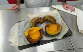 Once cooked, set aside until the pumpkin is cool enough to handle.