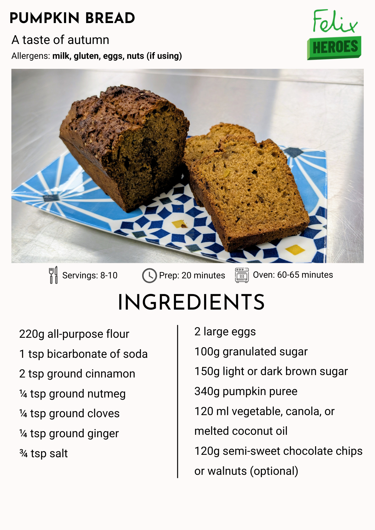 I've worn many hats here at The Felix Project, from working in each of the 4 depots and Felix's Kitchen to now sitting on the Marketing team as the Senior Digital Marketing Officer. Originally from the USA, I have seen way too many Halloween pumpkins rotting away on the front steps of houses, destined for landfill. A lot of time, resources, and love go into growing the 18,000 pumpkins that get wasted here in UK every year and as Halloween is my favorite time of the year, I wanted to share a recipe with you to help lessen our impact on the planet but also still allows us to make the most of the spooky season.