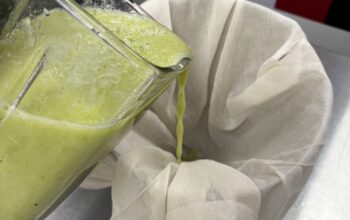 Strain through a fine sieve. We used some cheese cloth over our sieve but this it not necessary.